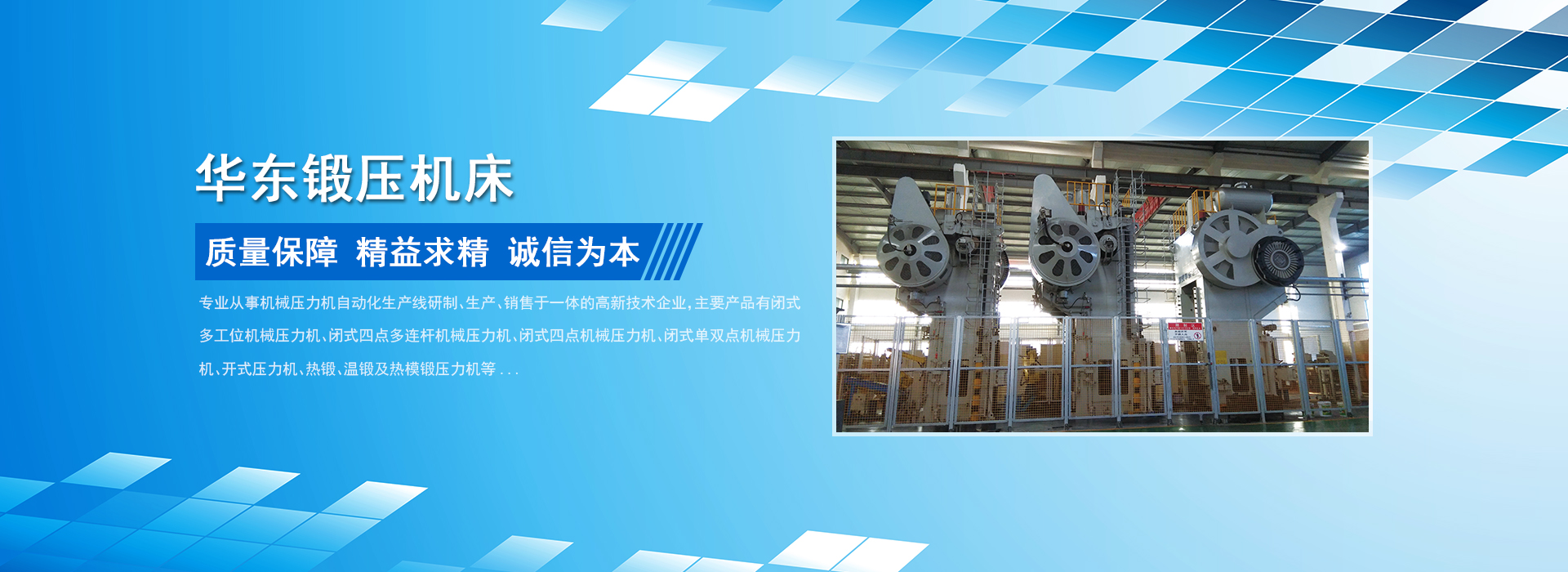 榮成華東鍛壓機(jī)床股份有限公司(榮成東源鍛壓機(jī)械有限公司)座落在山東半島的最東端,海陸空交通方便,是專業(yè)從事鍛壓設(shè)備及自動(dòng)化的研發(fā)、生產(chǎn)、銷售,并能為客戶提供個(gè)性化、多樣化、系統(tǒng)化服務(wù)的高新技術(shù)型企業(yè),專精特新小巨人企業(yè)。企業(yè)通過(guò)工信部的兩化融合、質(zhì)量、環(huán)境、職業(yè)健康及知識(shí)產(chǎn)權(quán)管理體系認(rèn)證,“華鍛”牌被授予山東省名牌、山東優(yōu)質(zhì)品牌產(chǎn)品。公司總占地面積250000多平方米,一期廠房建筑面積100000平方米,現(xiàn)有員工200余人,其中工程技術(shù)人員36人。公司各種加工設(shè)備齊全,工藝、檢測(cè)手段先進(jìn),擁有主要設(shè)備300余臺(tái)套??缮a(chǎn)閉式多工位機(jī)械壓力機(jī)、閉式四點(diǎn)多連桿機(jī)械壓力機(jī)、閉式四點(diǎn)機(jī)械壓力機(jī)、閉式單、雙點(diǎn)機(jī)械壓力機(jī)、開式壓力機(jī)、熱鍛壓力機(jī)及沖壓、鍛造自動(dòng)化設(shè)備等百余個(gè)規(guī)格型號(hào)的產(chǎn)品...